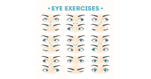 - نگاه نزدیک-دور: ۱۰ ثانیه نزدیک، ۱۰ ثانیه دور، ۱۰ بار – حفظ انعطاف عضلات فوکوس (تطابقی)